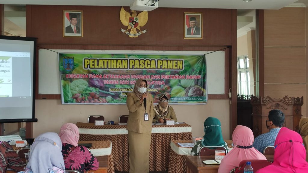 Salatiga, (08/11/2021) Pelatihan Pasca Panen yang dilaksanakan pada hari senin di Kantor Dinas Pertanian Kota Salatiga bertujuan untuk membekali para peserta sebagai pelaku usaha yang berdaya saing, serta dapat memaksimalkan hasil bumi yang tersedia di Kota Salatiga. Pelatihan ini memungkinkan para peserta lebih kreatif dan inovatif dalam mengolah serta mengemas, serta memiliki hak paten. Hak paten sendiri memiliki tujuan untuk perlindungan terhadap kemungkinan peniruan oleh pihak lain atas ciptaan atau temuannya itu. Pada pelayihan ini juga para peserta diajarkan cara menjual hasil olahan mereka di marketplace yang tersedia seperti shoope, tokopedia, buka lapak, dan lain sebagainya.